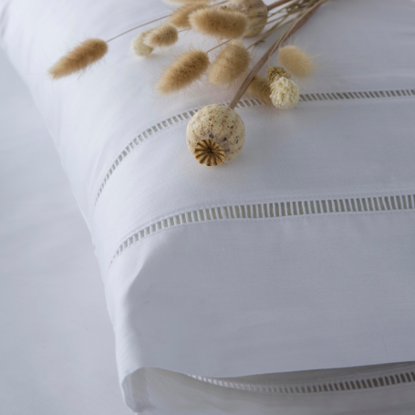 Su delicado acabado de vainica artesanal aporta un toque de elegancia clásica que realza cualquier dormitorio.